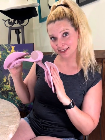 - 2. Para fortalecer el suelo pélvico: Siéntate en el suelo o en una silla firme con tus pies apoyados en el suelo. Coloca el Fortalecedor de la Pelvis entre tus muslos, cerca de las rodillas. Aprieta los muslos para ejercer presión sobre el dispositivo y mantén la contracción durante 3-5 segundos. Relaja los músculos gradualmente. Repite este ejercicio 10-15 veces, según tu nivel de confort.