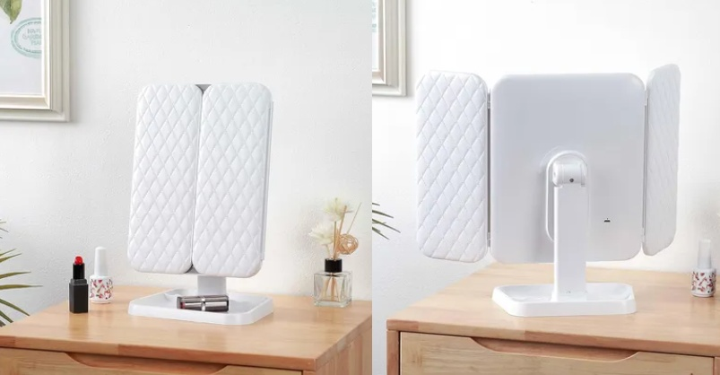 - 🌈 Con nuestro espejotriple con luz LED vas a decir: ‘¡wow!’ cada vez que te mires.Luz ideal, ángulo perfecto, y una sensación de que estás en un set de grabación de belleza. 🎬✨